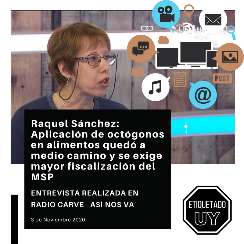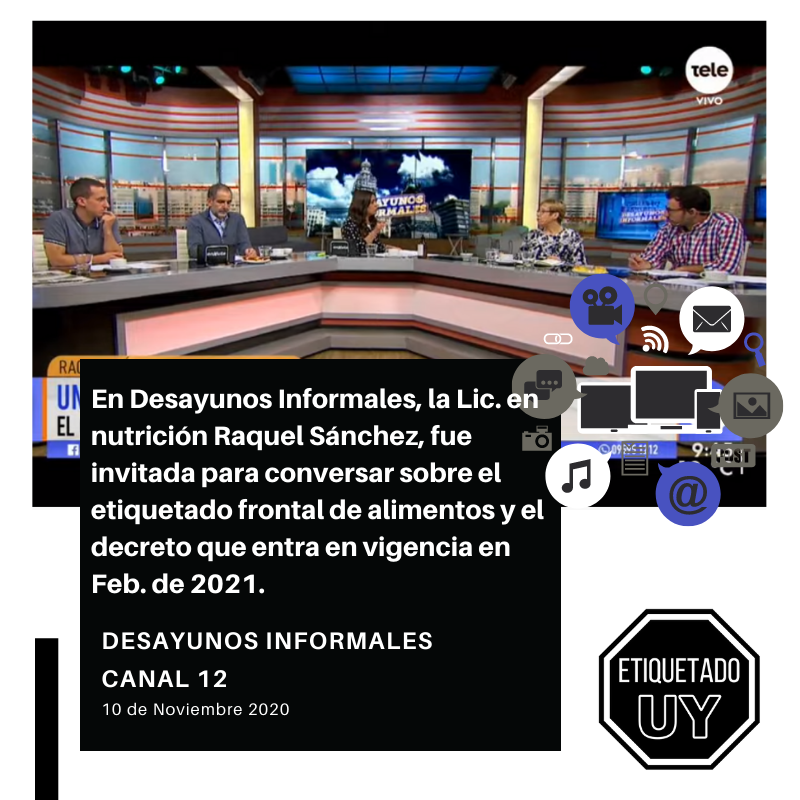 En el contexto de la campaña lanzada sobre el etiquetado y su entrada en vigencia a partir de Febrero de 2021, en el programa Desayunos Informales de canal 12, en la mañana del 10 de noviembre, fue entrevistada la Lic. en nutrición Raquel Sánchez.